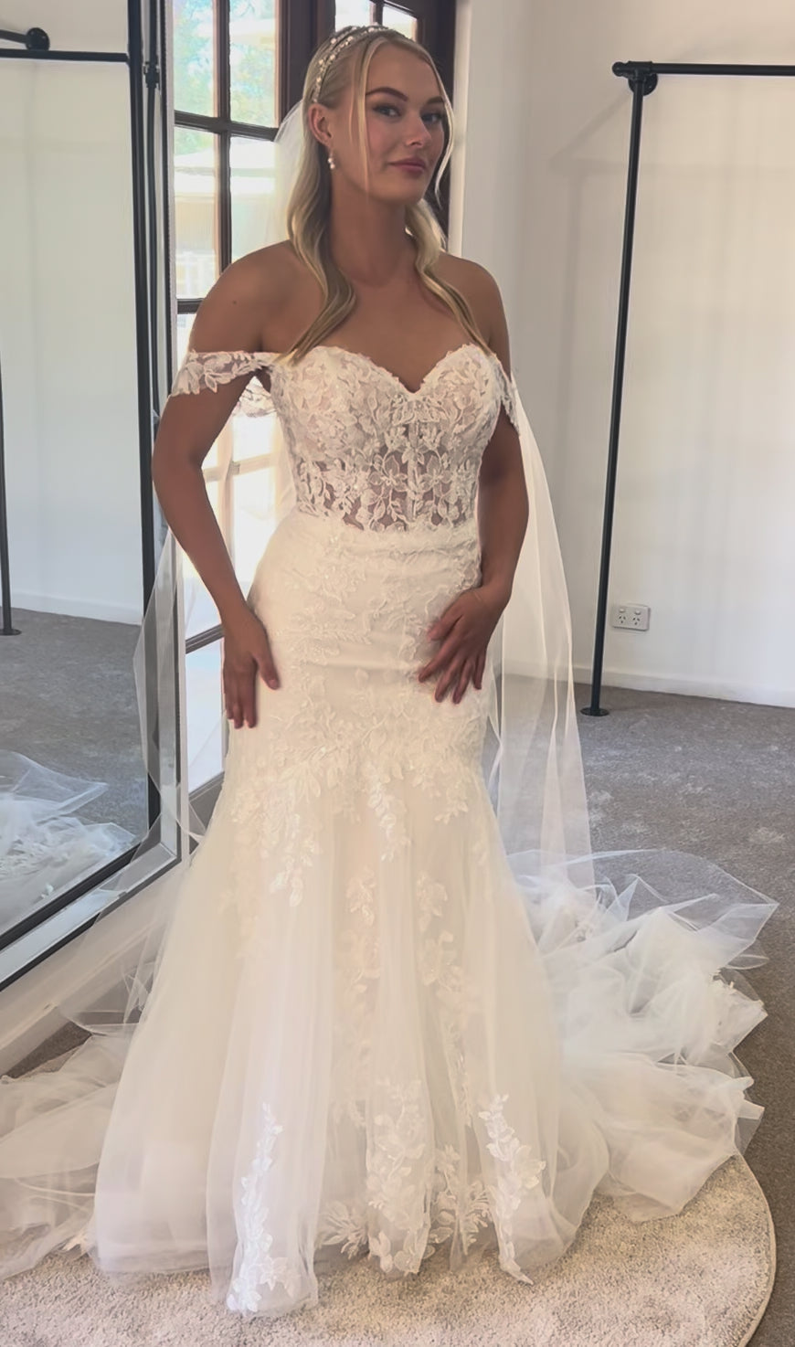 As per store policy, all bridal hire or purchase gowns require you to book an appointment to try on first as bridal sizing differs from AU street sizing.