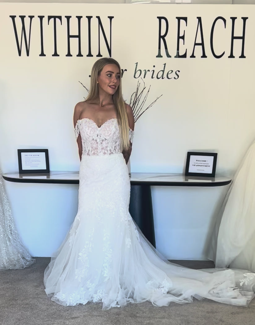 All gowns hired or purchased through WITHIN REACH include standard alterations, select customisations and drycleaning free of charge.