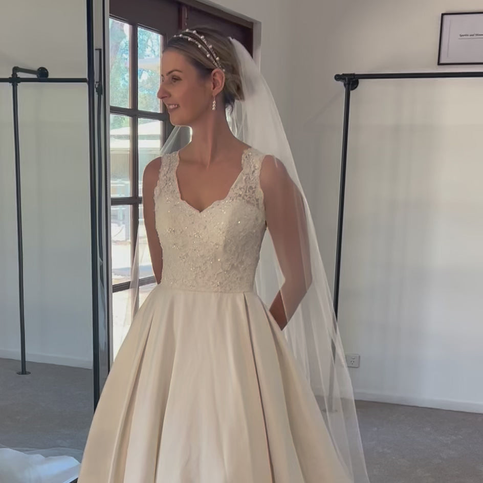 As per store policy, all bridal hire or purchase gowns require you to book an appointment to try on first as bridal sizing differs from AU street sizing.